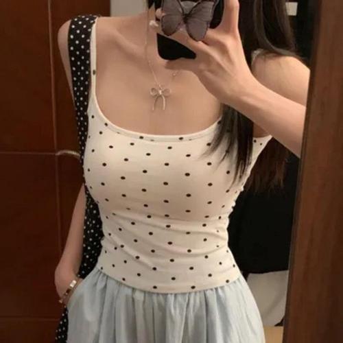 [다잇템]여자 캡내장 U넥 키치무드 도트 민소매티 (41246989A)