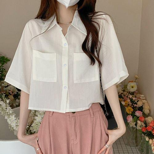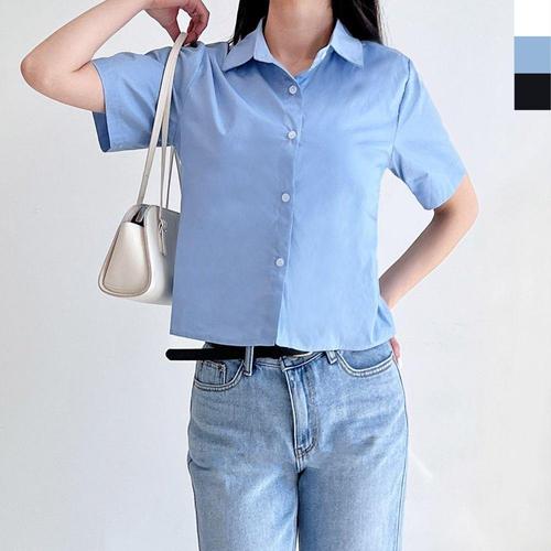 [셀럽하우스]여자 PMEQ4969 린넨 여름 트렌드 크롭 반팔셔츠 데일리 카라 루
