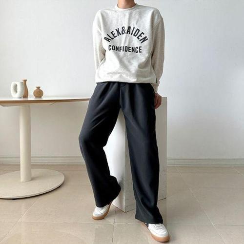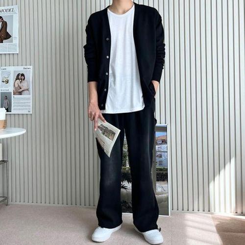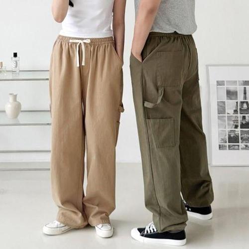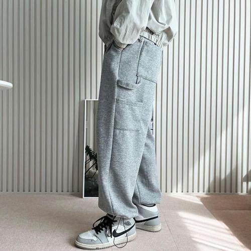 [에이치플러스몰]와이드 캐쥬얼반바지 커플룩 봄 밴딩반바지 츄리닝 면