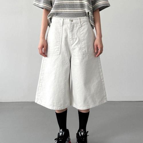 [다잇템]여자 에이라인 크림색 버뮤다팬츠 넓은 반바지 (32684476A)