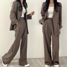여성 정장 상하세트 와이드 캐주얼 블레이저 오피스 투피스 긴팔 롱자켓 밴딩 하이웨스트 슬랙스 팬츠 셋업 하객룩 출근룩