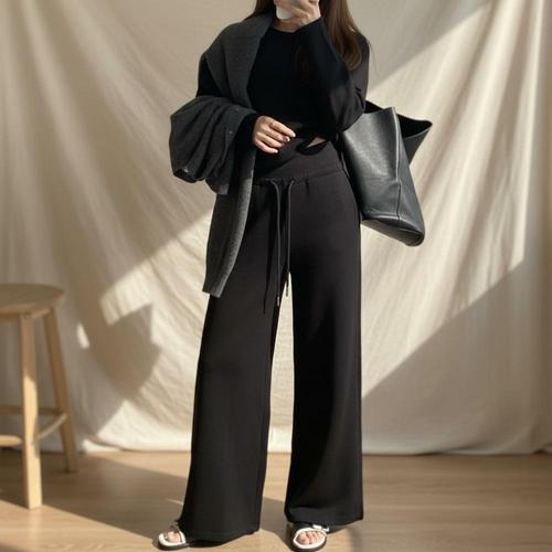 [옷자락] 여성 와이드핏 드로우스트링 롱 스웨트팬츠