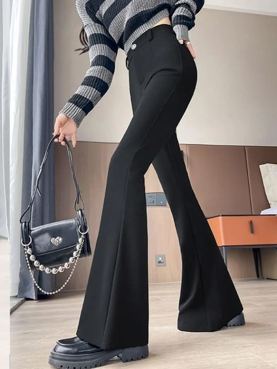 슬림핏 하이웨이스트 마이크로 플레어 팬츠 여성용 블랙 엘라스틱 캐주얼 포켓 스퀘어 2025년 봄 신상품 작은 체형용