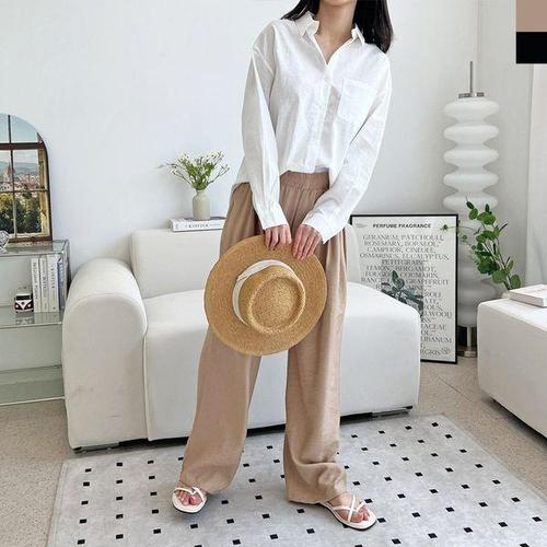 [셀러허브_여성트랜드패션]ONM 여름 시원한 통바지 밴딩 와이드 슬랙스 편안한루