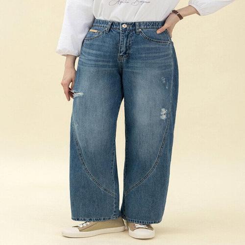 [퍼스트클로]여성 데미지 밴딩 배기팬츠 빅사이즈 청바지_GB6673