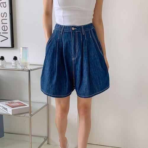 하이웨이스트 5부 얇은 데님 반바지 여성 여름 와이드 레그 루즈핏 청바지 텐셀 소재 블루 컬러 성인 사이즈