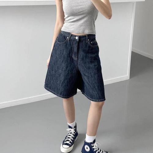 [다잇템]여자 하프 데님버뮤다팬츠 와이드핏 청반바지 (15839262A)