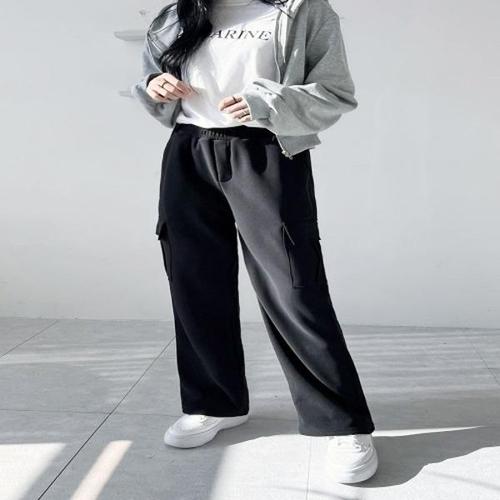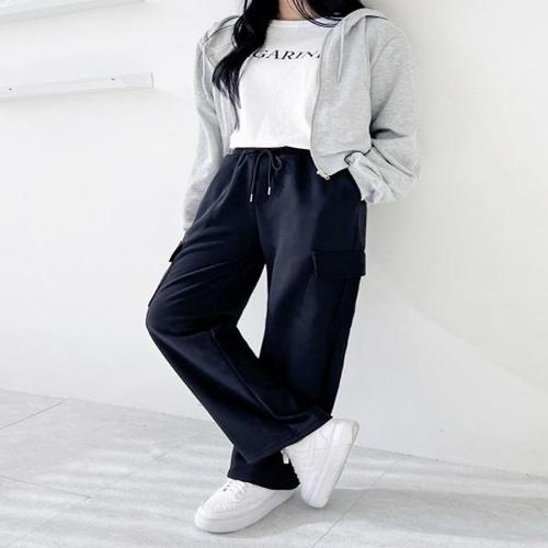 힙제이 기모바지 와이드팬츠 카고바지 스트링 통바지 고무줄 YH141 여성 기모통바지