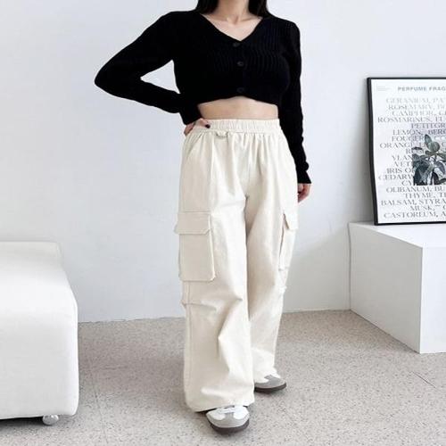 여자 카고 조거팬츠 스트링 와이드 밴딩 건빵바지 여 와이드팬츠 카고바지