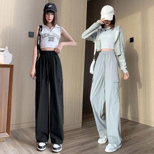 더그랜 여성 와이드 카고 조거 팬츠 스트릿 밴딩 바지, 2종세트