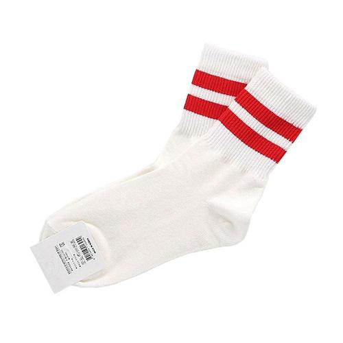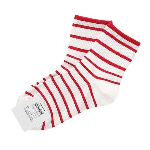 여성용 목굵은줄 패션양말 흰빨 3켤레 WFHPU18