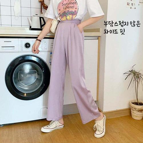 [셀럽하우스]여성 EXDP5940 대학생 깔끔한 와이드팬츠 투턱 편한바지 밴딩