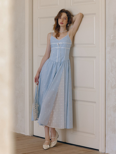 [레비쥬 필라소피] LB_Bow polka dot splicing camisole dress
