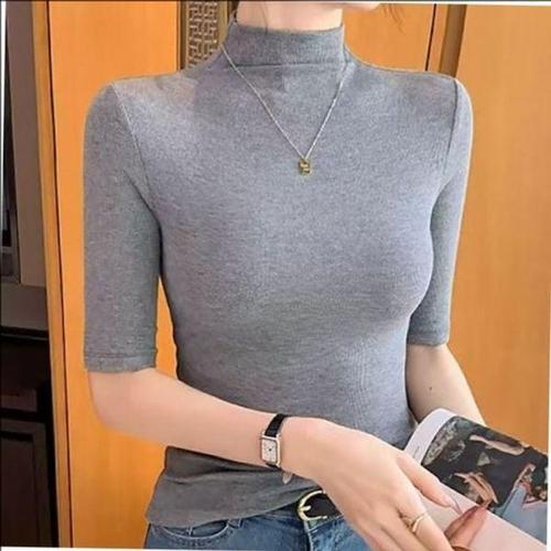 [에이치플러스몰]여성목폴라티 니트 반팔 5부 여성봄니트 여성반
