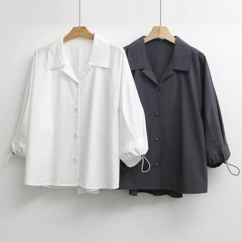 [다잇템]여자 바스락 앞뒤버튼 칠부 출근룩 언발 셔츠 (14942322A)