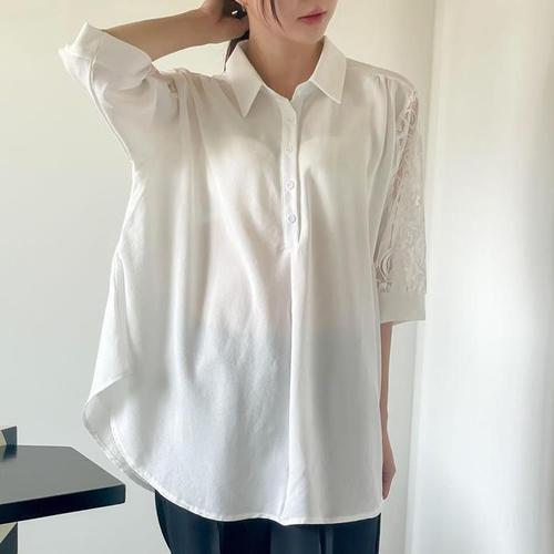 [셀러허브_여성트랜드패션]여성 셔츠 칠부 소매 화이트 블라우스