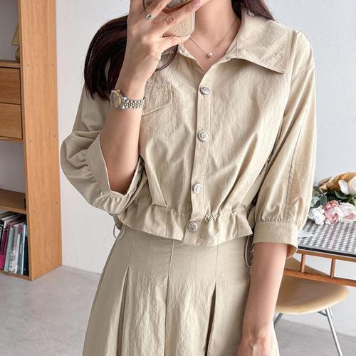 [다잇템]여자 남방 칠부 드로우코드 잔주름 나일론 자켓 (14668588A)