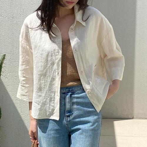 여성용 7부 린넨 셔츠 블라우스 상의 면마 남방 중년 여름 고급 칠부소매