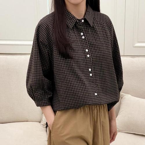 [다잇템]여자 체크면남방 깅엄 칠부셔츠 아방 블라우스 (18990842A)