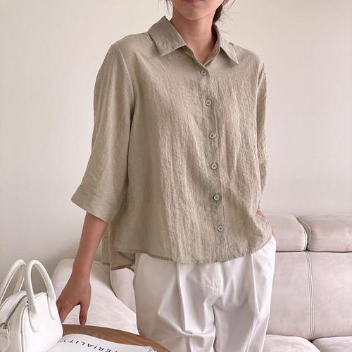 [다잇템]여자 바스락 SS 썸머 데일리 카라넥 칠부 셔츠 (15945425A)