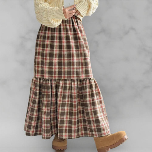 [옷자락] 여성 겨울 시즌 연말 데이트룩 플리츠 빅사이즈 체크 롱치마