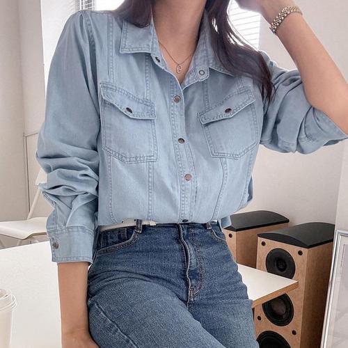 [다잇템]여자 엉덩이기장 코튼 청청패션 SS 연데님 셔츠 (13877565A)