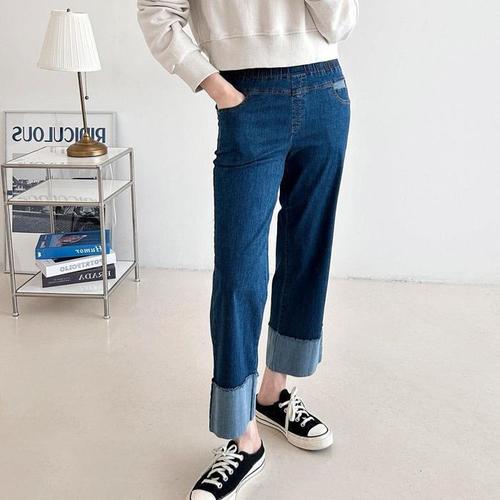 [다잇템]여자 통핏 H라인 연데님 폴딩 단추없는 청바지 (14540828A)
