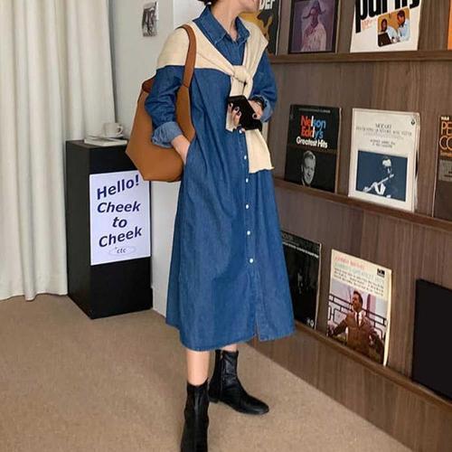 [셀럽하우스]브이넥 IRYV8513 옆트임 추천 니트롱 원피스 롱니트