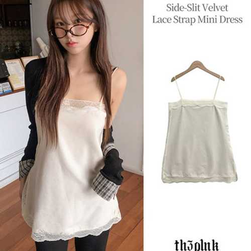 더핑크 / 벳미 옆 트임 레이스 끈 나시 미니 원피스