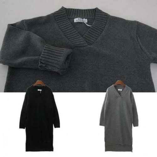 [셀럽하우스]롱원피스 YWYS1491 여성 추천 2컬러 1P 옆트임 브이넥 니트 여