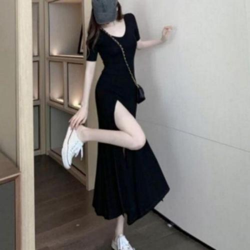[셀럽하우스]블랙 PEHX7200 데일리 추천 원피스 여름 반소매 옆트임