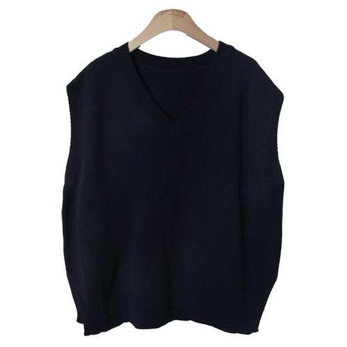 [샵앤]국산 여성 루즈핏 레이어드 V넥 옆트임 6컬러 니트 조끼 JLE-WVS-4295-네이비