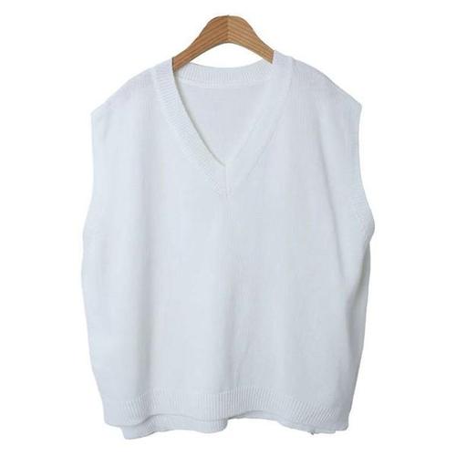 [샵앤]국산 여성 루즈핏 레이어드 V넥 옆트임 6컬러 니트 조끼 JLE-WVS-4295-아이보리