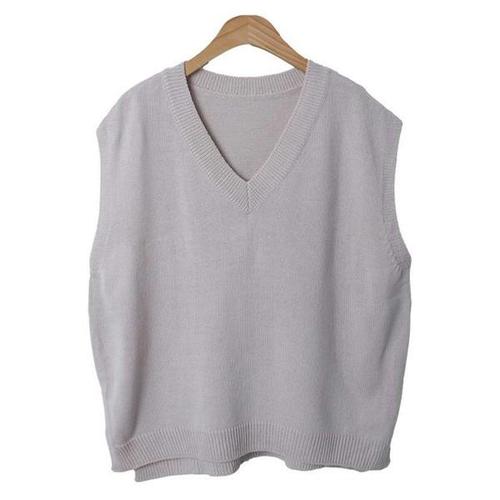 [샵앤]국산 여성 루즈핏 레이어드 V넥 옆트임 6컬러 니트 조끼 JLE-WVS-4295-베이지