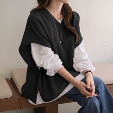데일리앤 율스 여성 박시핏 레이어드 가오리 옆트임 브이넥 니트 조끼