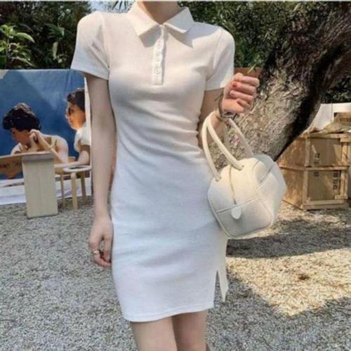 [에이치플러스몰]옆트임 반팔 원피스 ST150 롱