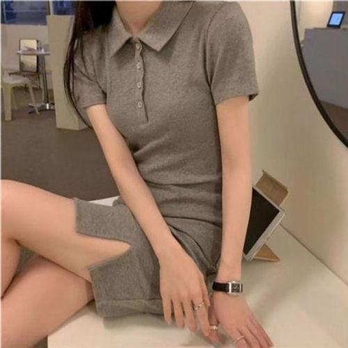 [에이치플러스몰]여성 캐주얼 추천 카라 옆트임 꾸안꾸 반팔 미니
