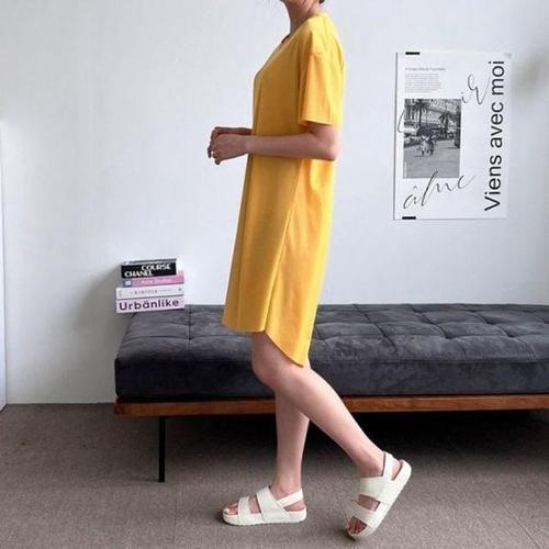 [에이치플러스몰]Sale 봄원피스 데일리 골지 옆트임 클래식 반팔