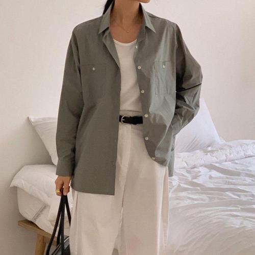 [문에이블]문에이블 여자 여성 가을 봄 간절기 아우터 캐주얼 옆트임 기본템 긴팔 남방 코튼 셔츠
