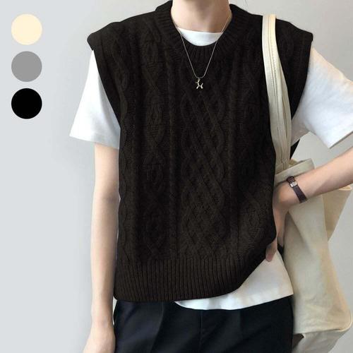 [셀럽하우스]기본 USYL9574 여성니트티 예쁜 귀여운조끼 무늬 라운드 베스트