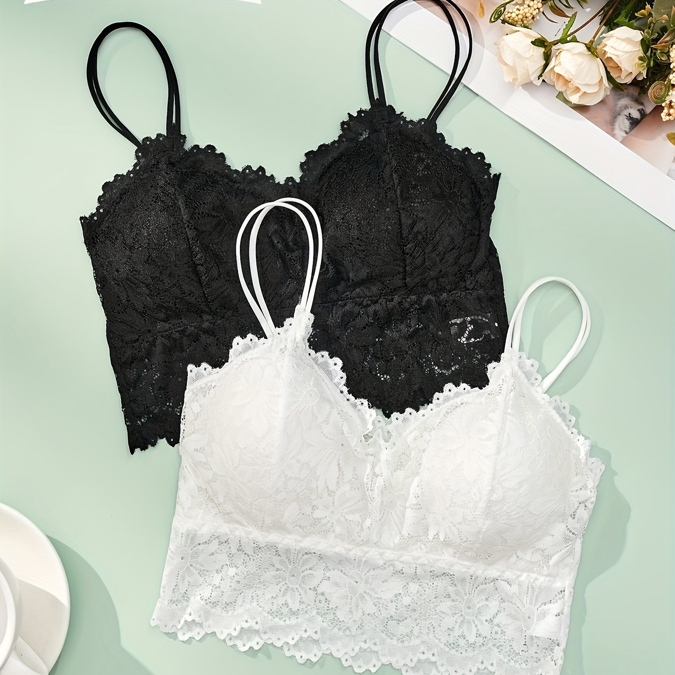 TEMU 3개 세트 여성용 와이어프리 푸시업 브라, 레이스 & 메쉬 패널 속옷
