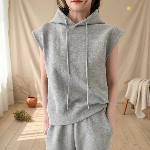 [옷자락] 여성 루즈핏 면스판 후드 민소매 와이드팬츠 세트