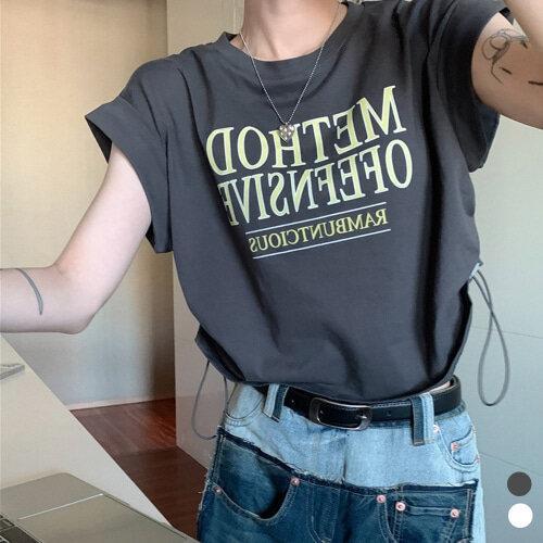 [굿쇼핑몰_의류]2컬러 루즈핏 스트링 레터링 민소매 반팔 티셔츠