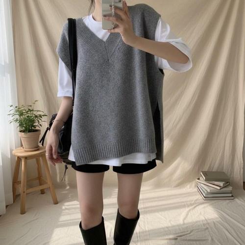 [애슬릿][애슬릿]여성 니트 조끼 베스트 봄 여름 브이넥 루즈핏 빅사이즈