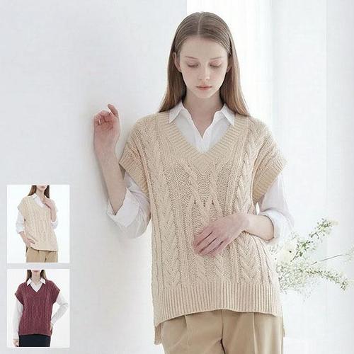 [주식회사 브이와이][JHQRJNC6_4B]루즈핏 봄니트베스트 레이어드 꽈배기 베스트 (24038386A)