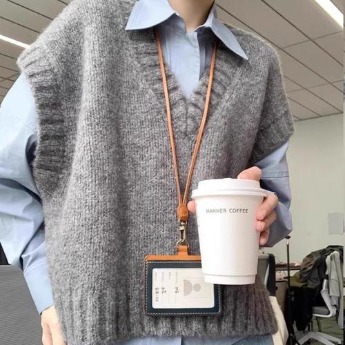 보슈 여성 니트조끼 브이넥 기본 베스트 루즈핏 간절기 조끼