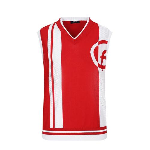 [팬텀][팬텀골프]여성 메쉬 스트라이프 배색 V넥 오버핏 니트 베스트 221D2SV481_RE_GN