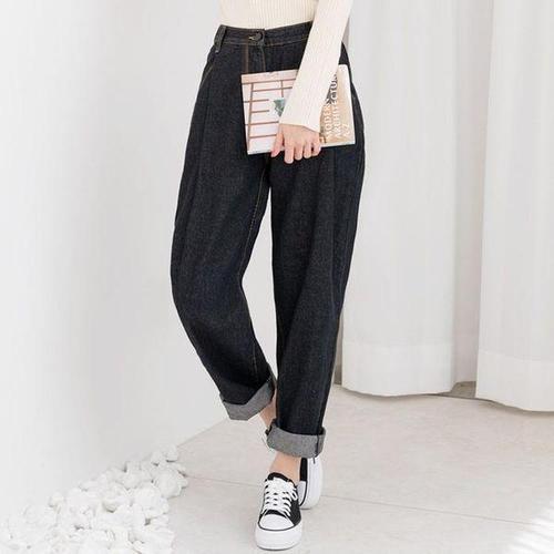 [에이치플러스몰]여성핀턱오버핏배기청바지_블랙 WJ2-1D HSSG