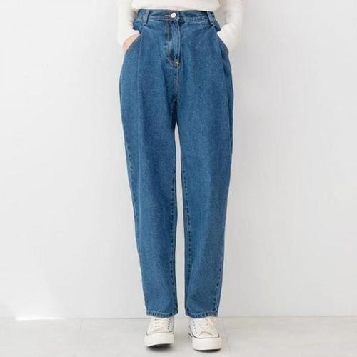 [에이치플러스몰]여자핀턱배기청바지 중청 오버핏 스판 데님청바지