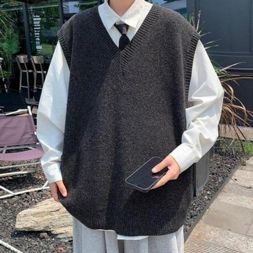 봄 가을 남자 니트 조끼 캐주얼 풀오버 상의 루즈핏 레이어드 민소매 니트 오버핏 브이넥 조끼 베스트 ZZL